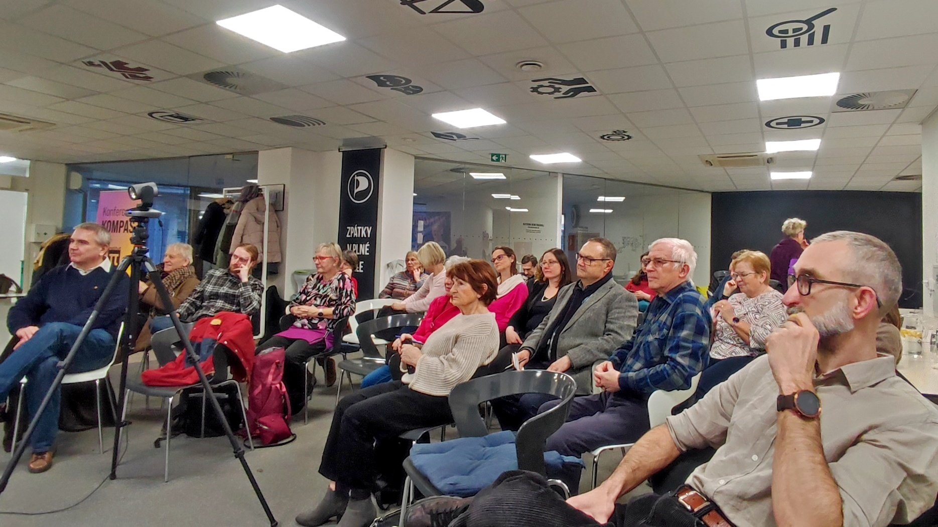 Sešli se lidé různého věku z pirátského prostředí i aktivní senioři z řad veřejnosti, které zaujal výjimečný host i zvolená témata. V otevřené atmosféře se mluvilo o demografických hrozbách, světové a české ekonomice i možných scénářích dalšího vývoje. Diskusi doplnil poslanec Samuel Volpe, který přinesl zkušenosti a pohled z pirátského poslaneckého klubu. Skvělá a živá diskuse by pokračovala mnohem déle než vyhrazené dvě hodiny!